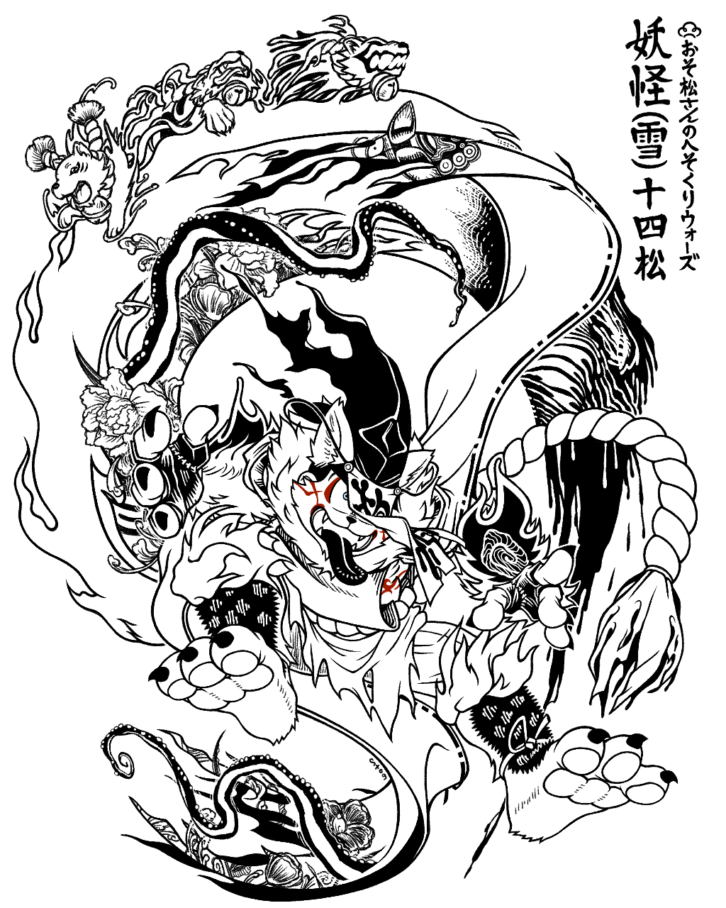 ・祝キャラブック妖怪松3周年 pixivに上の絵と下の暑中見舞い、ibis産2枚の計4枚投稿