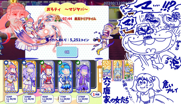・へそウォ/おろティマジヤバ無事クリア 六ツ鹿家の寸劇はまさにホラーとギャグは紙一重のそれで大変楽しかった ふと今回の養女じょし松で本家アニメからアプリへそウォ内へキャラクター達がUFOアブダクションされる様を空想する。クズニー関連は大雑把メタ的に言えばそういった話なのだろうと個人的に思っているが、事の真相に思いもよらぬ巧みな本や仕掛けがまだまだ待ち構えている事だろう楽しみですな