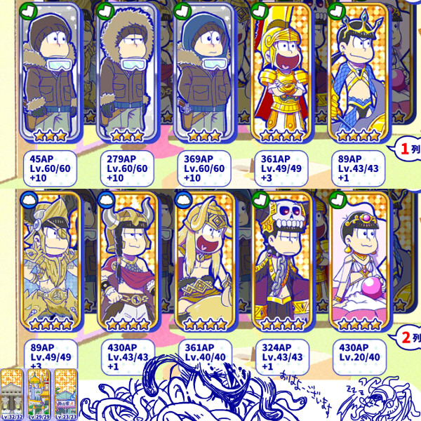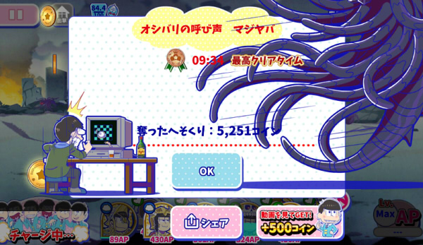 ・へそウォいあいあ/オシバリの呼び声マジヤバ無事クリア 後半空が不足するまでオートで進めた 当然のように十四松がハスターで安心する