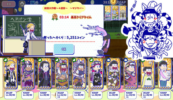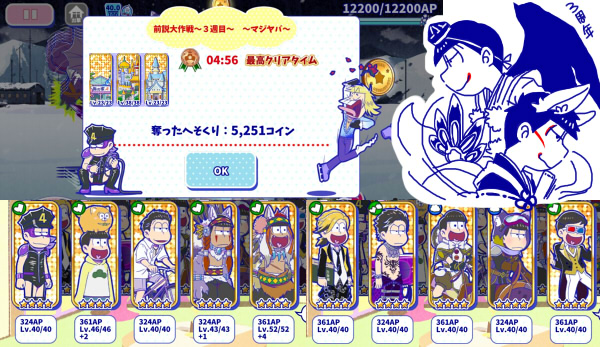 ・各マジヤバクリアのちplanetarian視聴しつつの今日中に妖怪松6人どうにか描き終えられた焦点合わんおやすみ(11/23-am1:51)